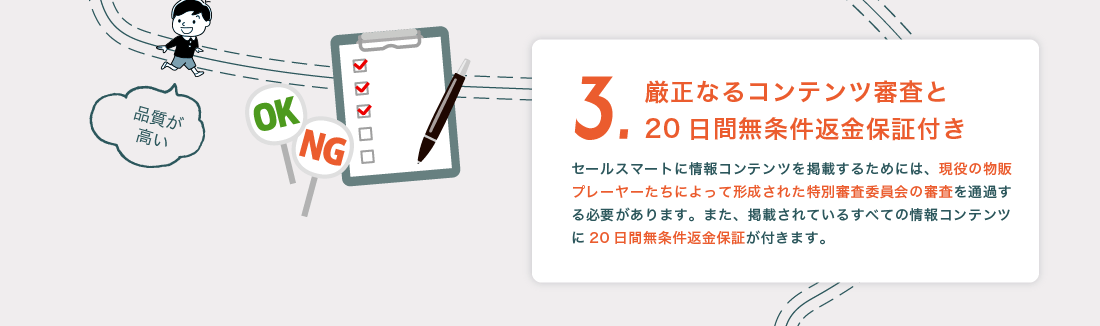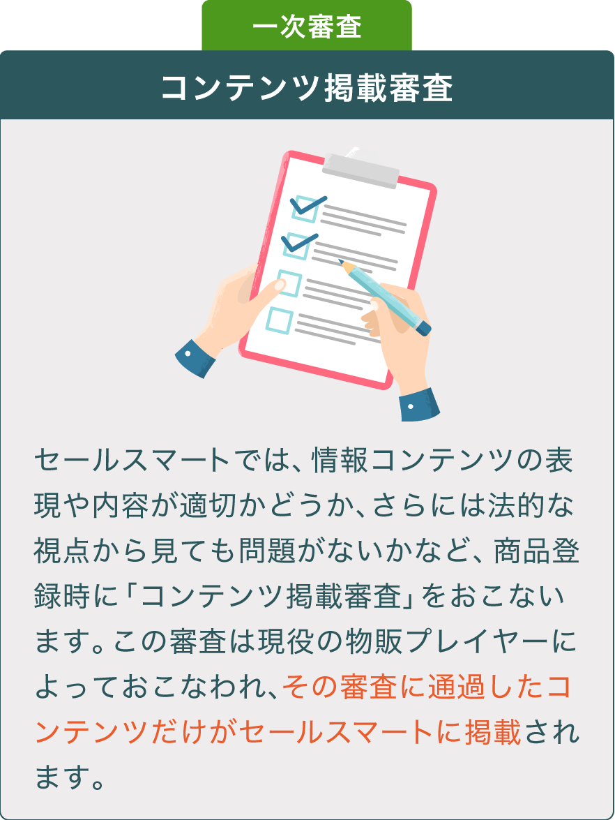 情報コンテンツの2段階審査をおこなっています。